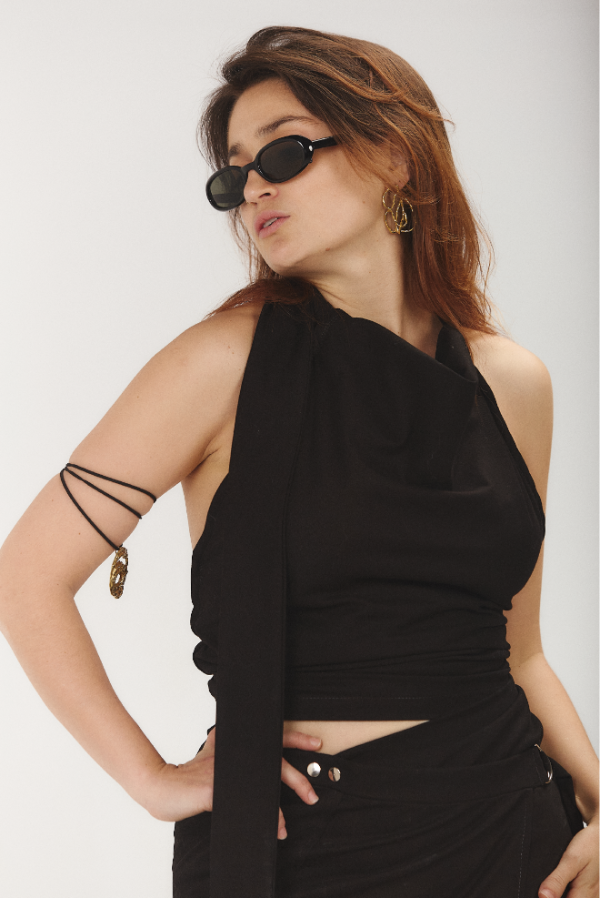 Top tipo pechera con tiras en cuello, busto y cintura largas que permite que juegues de miles de formas y lo puedas usar millones de veces. Completa el conjunto con la Falda Baires.